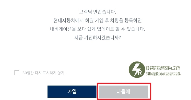 회원가입 후 차량을 등록하면 편리하긴 하지만 네비게이션 업데이트는 1년에 1번정도 하는 관계로 비회원으로 진행합니다.