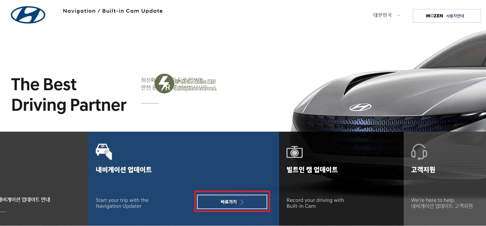 네이게이션 / 빌트인 캠 업데이트 메뉴에서 바로가기 버튼을 통해 접속해주세요.