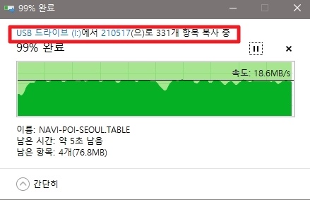 시작버튼을 눌러 내비게이션 업데이트를 진행합니다.
