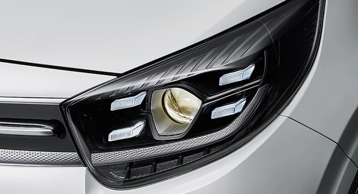 그릴과 렘프는 서로 이어지는 모습으로 효과를 주고, 헤드램프는 LED 프로젝션으로 구성되어 그릴과 렘프를 분리시켜 보다 세련되고 날렵한 이미지를 보여주고 있습니다. 그릴과 렘프 뿐만 아니라 전면 범퍼 부분도 디자인의 변화가 있는데요. 안개등은 하단으로 배치하여 그 크기를 기존 모닝의 크기보다 더 키웠습니다.