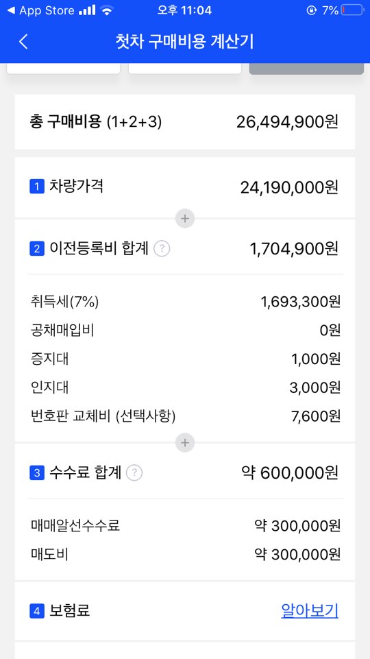 차량을 고르고 첫차 구매비용 계산까지 가능합니다.