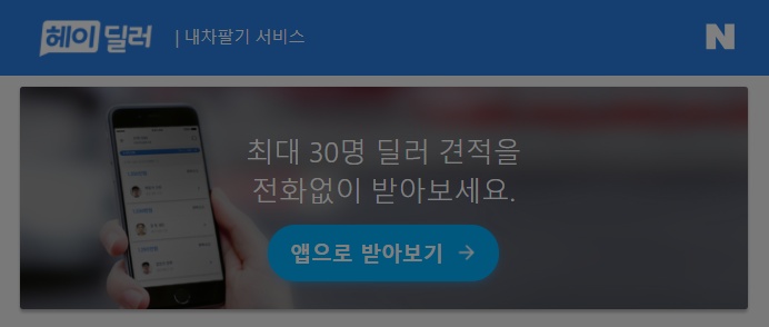 두 번째 어플인 헤이딜러는 어플을 통해서 견적을 받는 방법인데, 헤이딜러는 광고도 요새 많이 하는 편이지만 그만큼 차를 팔려고 하시는 분들의 평가도 좋고 비교견적 횟수도 많기 때문에 어플중에서는 가장 괜찮은 어플이라고 생각합니다.
