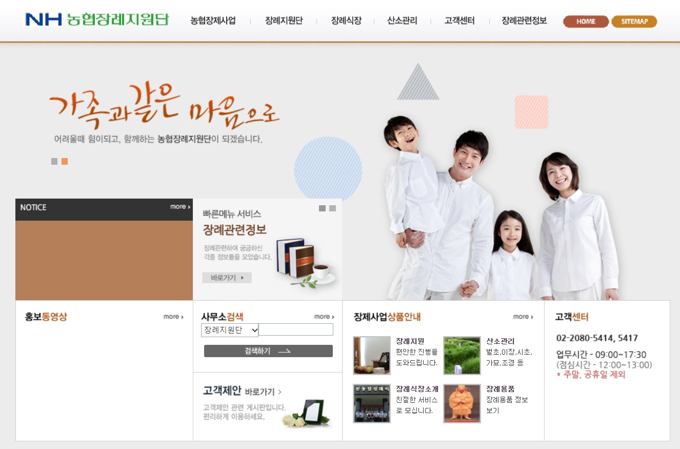 1) 우선 농협장례지원단 홈페이지에 접속해 주세요 ( 농협장례지원단 바로가기 )