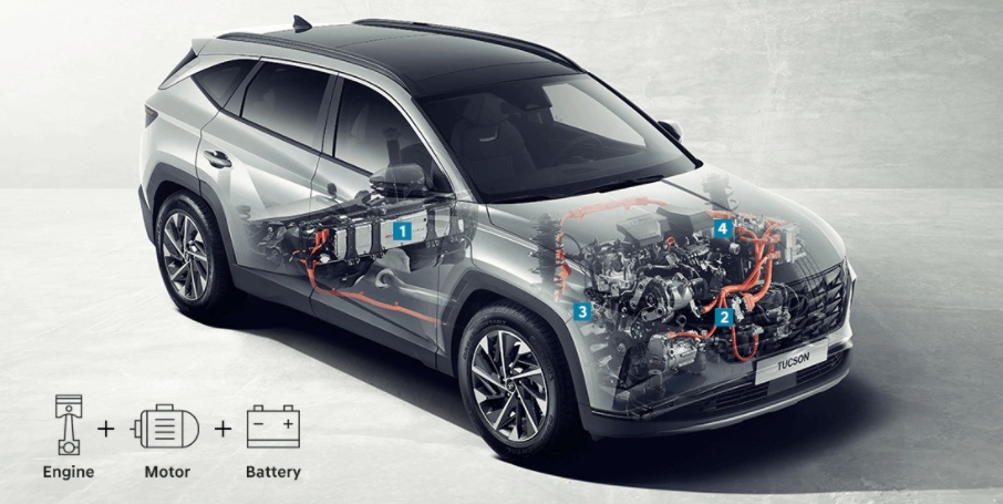 이 배터리는 투싼 하이브리드 뒷자석 하단에 배치하여 트렁크 용량 공간을 확보하였습니다. 또한 영구자석형 전기모터를 적용하여 주행 시 하이브리드가 엔진 출력을 보조하고 자동변속기와 결합하여 주행성능 및 연비를 향상시킵니다.