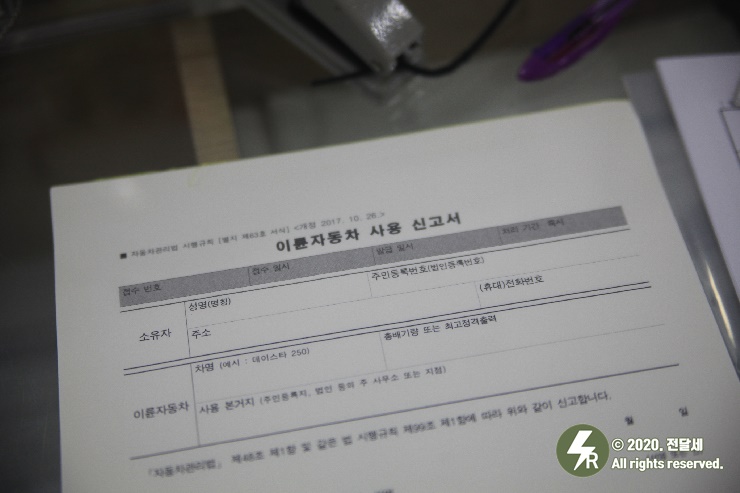 구청에 도착하셔서 이륜차 사용 신고서를 작성해 주시면 되는데,