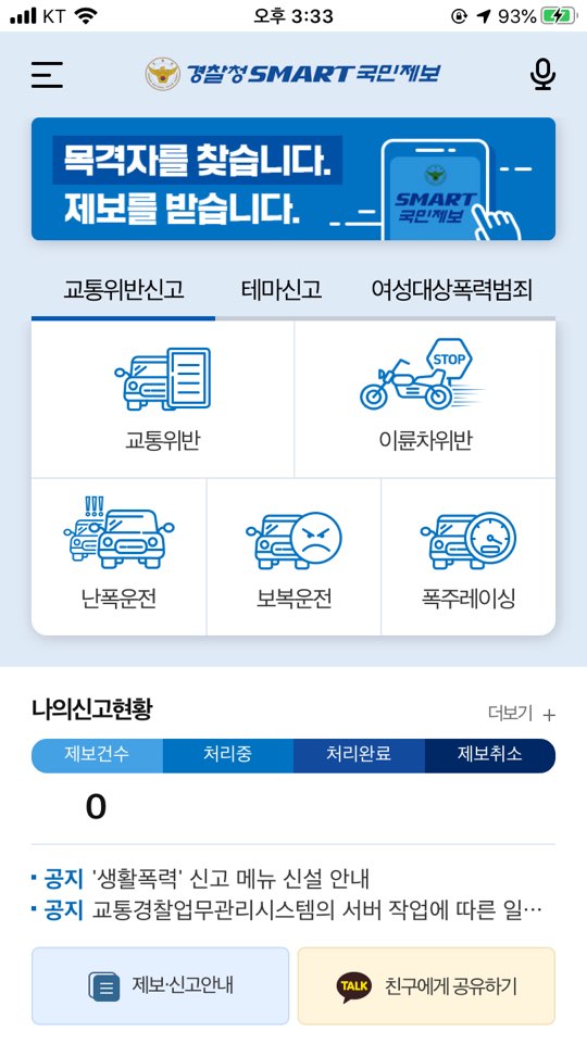 주로 교통법규를 위반하거나 주정차구역이 아닌 곳에 주차를 한 차량등을 신고할 때 유용하게 쓰이는 어플입니다.