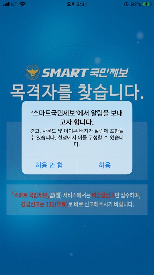 이럴때 필요한 것이 바로 스마트 국민제보 신고이며, 어플 이름은 스마트 국민제보 목격자를 찾습니다 입니다.