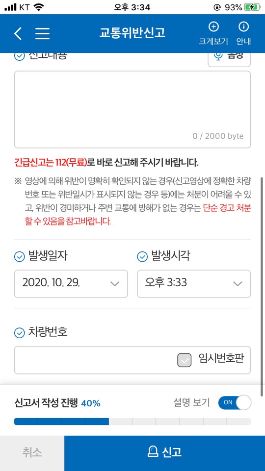 스마트 국민제보 신고방법은 위에서 말씀드린대로, 핸드폰에서 이미 찍어둔 사진이나 실시간으로 촬영을 해서 업로드가 가능합니다.
