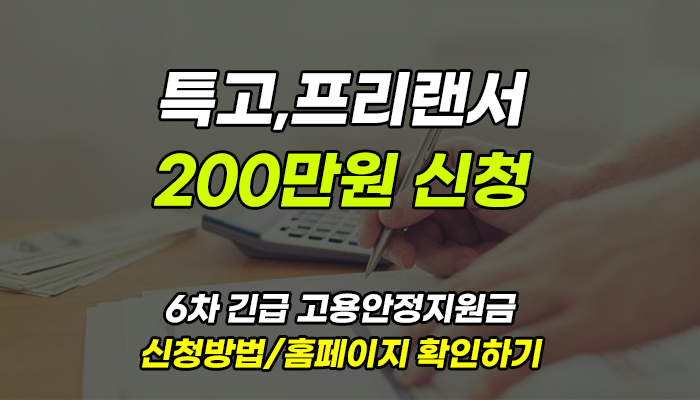 특고(특수고용직), 프리랜서를 대상으로 한 6차 긴급고용안정지원금 200만원을 지급합니다.