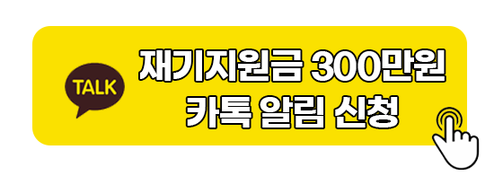 재기지원금 300만원 신청과 각종 소상공인 지원금 정보를 누구보다 발빠르게 무료로 받아보시려면 아래 카톡채널 무료로 추가해보세요.