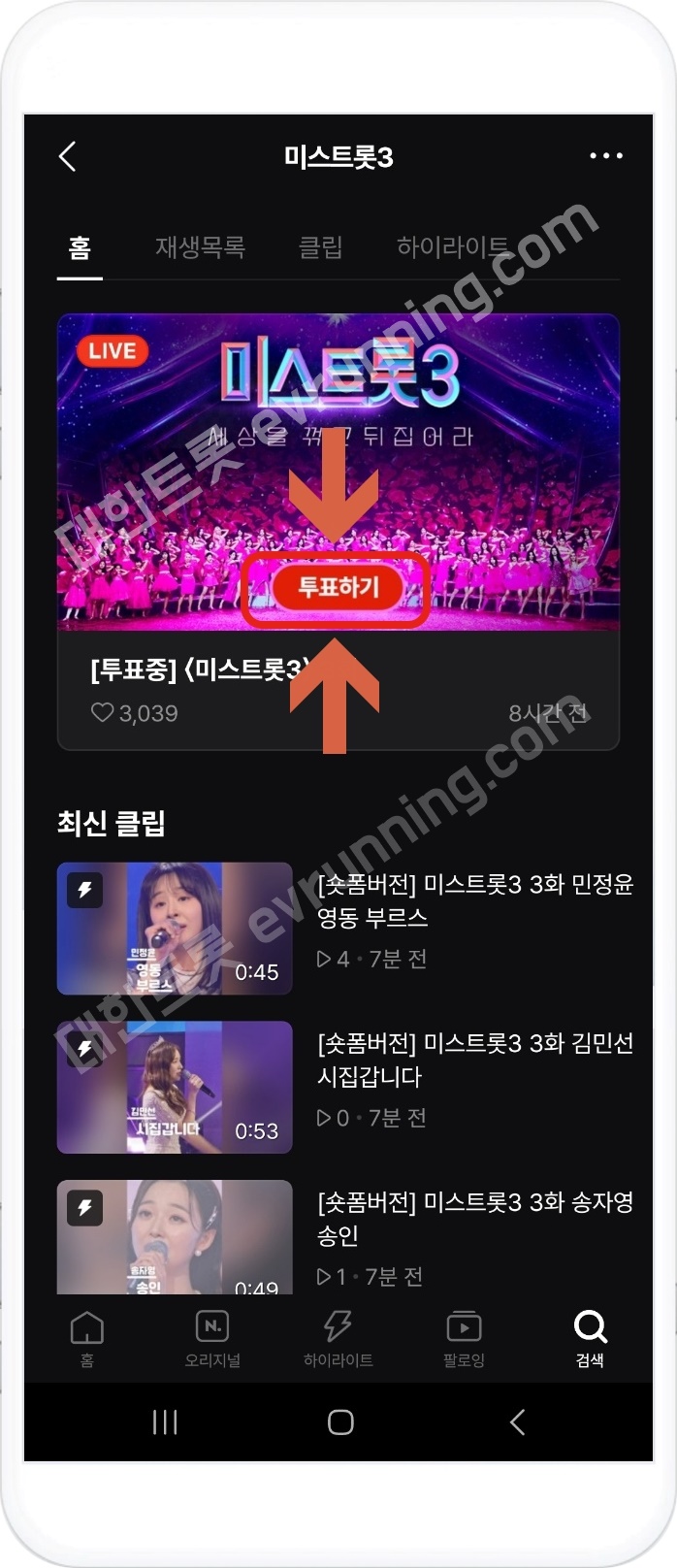 3. 미스트롯3 검색하기