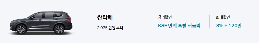 싼타페는 11월 현대자동차 프로모션 중 괜찮은 편이며 최대 120만원 할인 + 3% 추가 할인이 가능합니다. 금리또한 특별 저금리가 가능하여 2.5%대의 금리로 적용이 가능한데요.