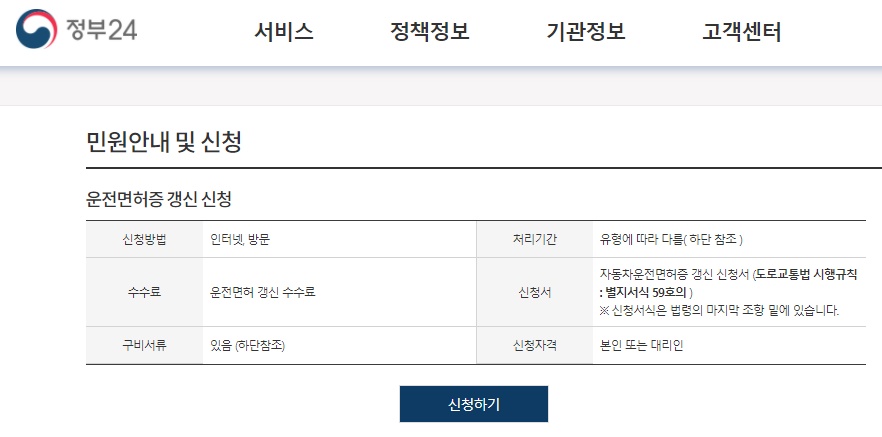 [ 민원 24 운전면허증 갱신 신청 바로가기 ]