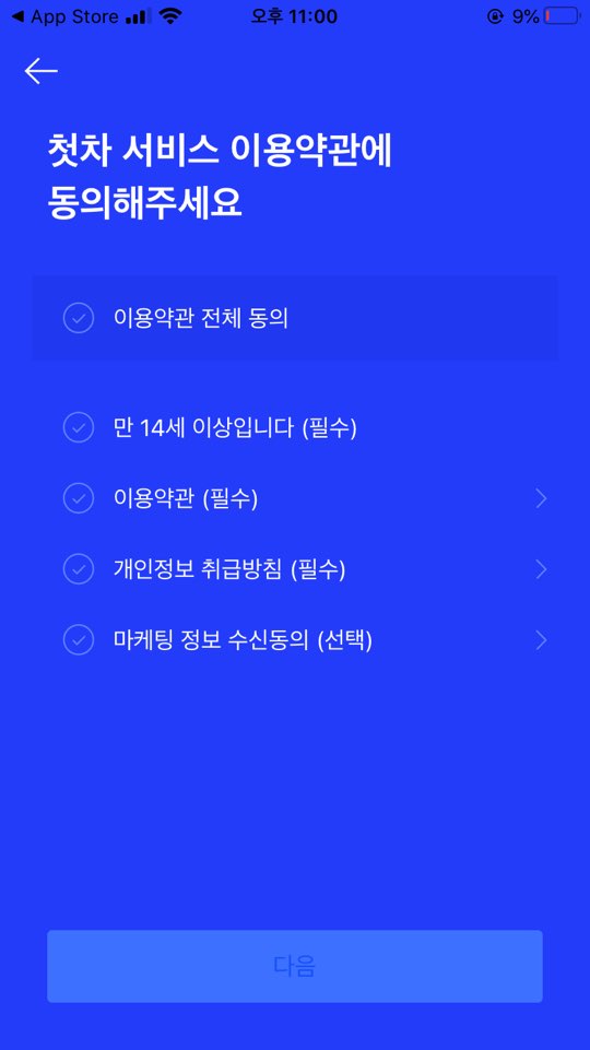 첫차 가입 전 기본적인 서비스 이용동의가 필요합니다.